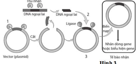 Câu 13. Hình 3 vẽ mô tả sơ đồ công nghệ DNA tái tổ hợp. Các số 1, 2 và 3 trong hình thể hiện nội dung nào sau đây?