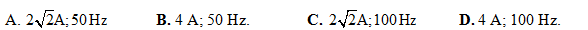 Câu 3: Một dòng điện xoay chiều được mô tả bởi phương trình i = 4cos100πt A, t tính bằng s. Cường độ dòng điện hiệu dụng và tần số dòng điện này là