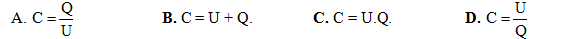 Câu 5: Điện dung của tụ điện đặc trưng cho khả năng tích điện của tụ điện ở một hiệu điện thế nhất định, được xác định theo công thức