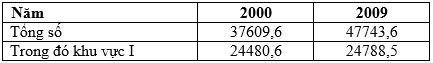 a) Dựa vào bảng số liệu, hãy tính tỉ trọng của khu vực I (nông – lâm – thuỷ sản) trong cơ cấu lao động có việc làm cả nước năm 2000 và năm 2009.