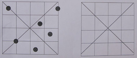 GV hướng dẫn: Vẽ thêm chấm tròn vào hình bên phải sao cho giống hệt hình bên trái.