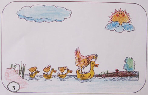Dựa trên 3 bức tranh này học sinh phải tự kể một câu chuyện ngắn.