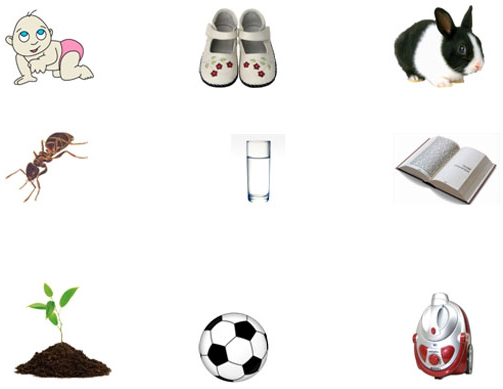 Câu 3: Những vật nào dưới đây có thể lớn lên nhờ ăn uống và chăm sóc? Khoanh tròn các hình đó.