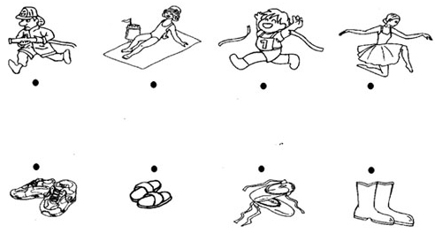 Câu 4: Nối mỗi đôi giầy đúng với chủ của nó.