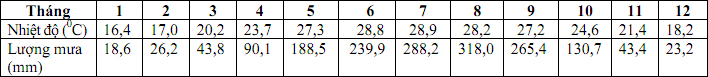 Nhiệt độ và lượng mưa của Thành phố Hà Nội