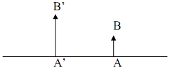 Vật sáng AB đặt trước một thấu kính, AB vuông góc với trục chính, A nằm trên trục chính. Ảnh của AB qua thấu kính là A'B' như hình vẽ.