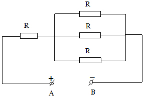 Cho mạch điện như hình vẽ, trong đó R1 = 15Ω, R2 = R3 = R4 = 60Ω. Biết cường độ dòng điện qua R2 là 0,5A.