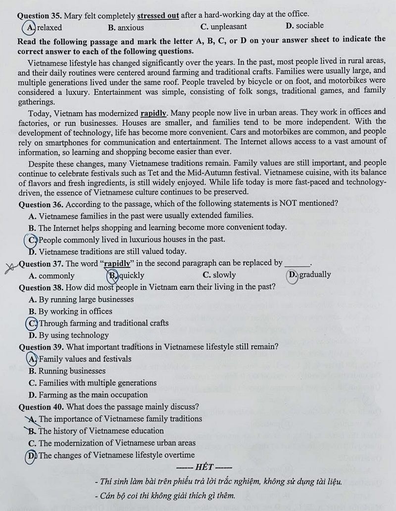 Đáp án đề thi tuyển sinh lớp 10 môn Anh 2025