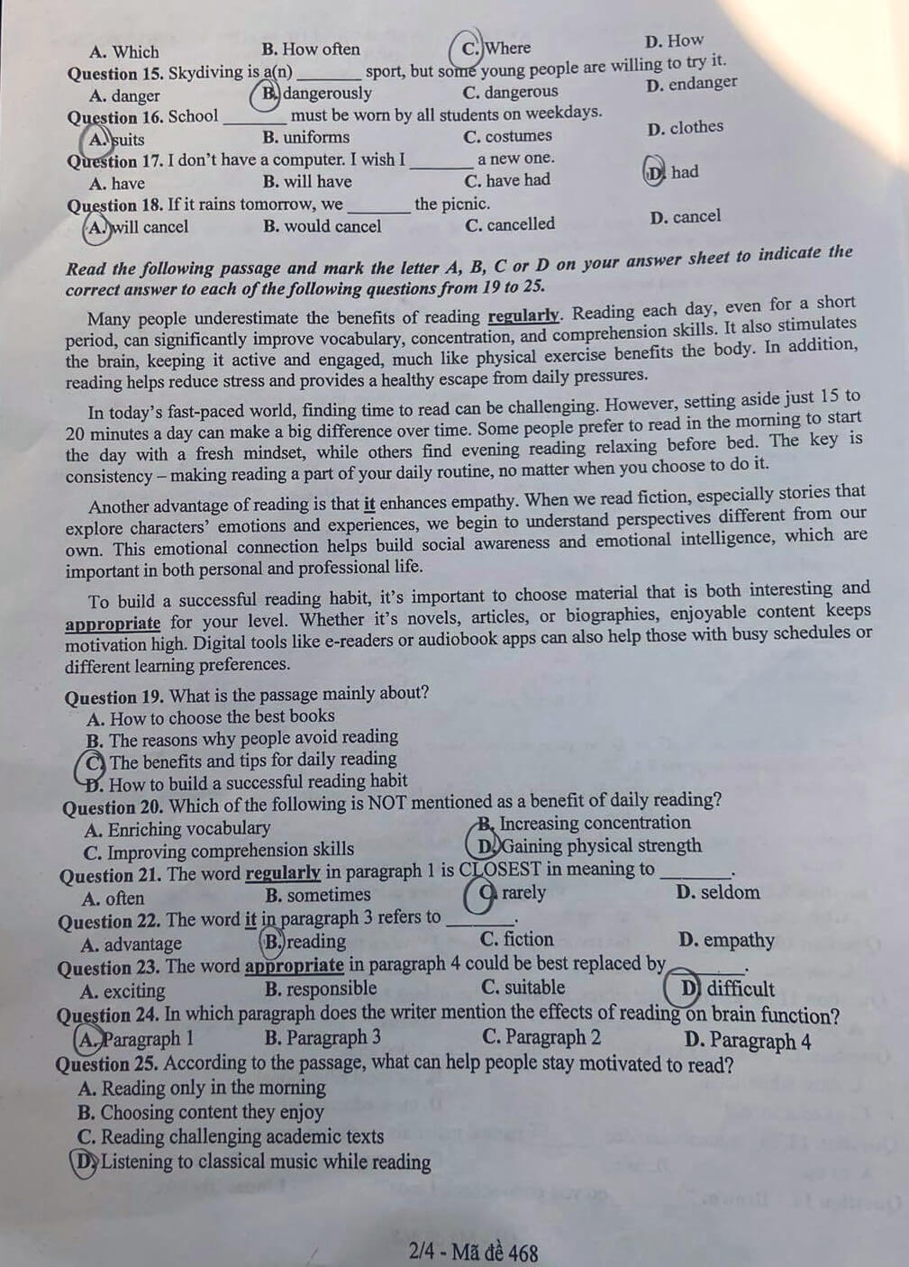 Đáp án đề thi vào 10 môn Anh Vĩnh Phúc năm 2025