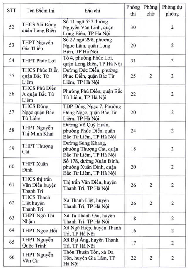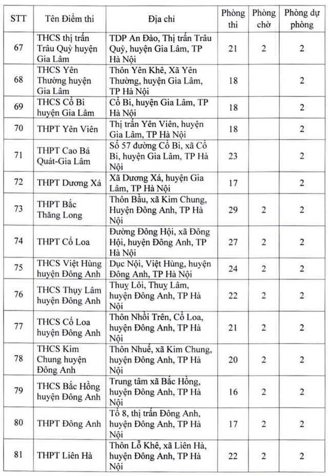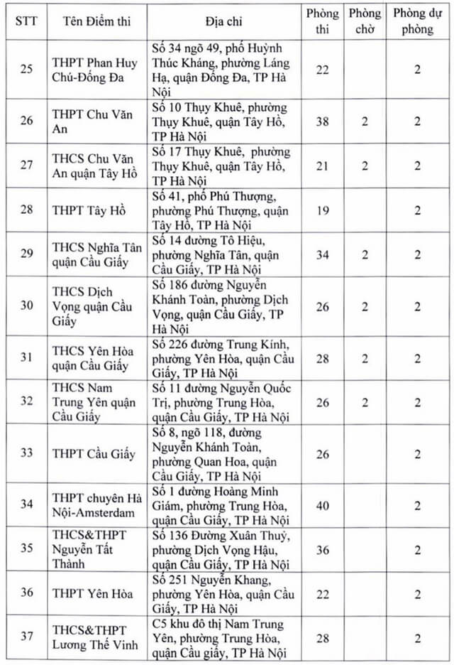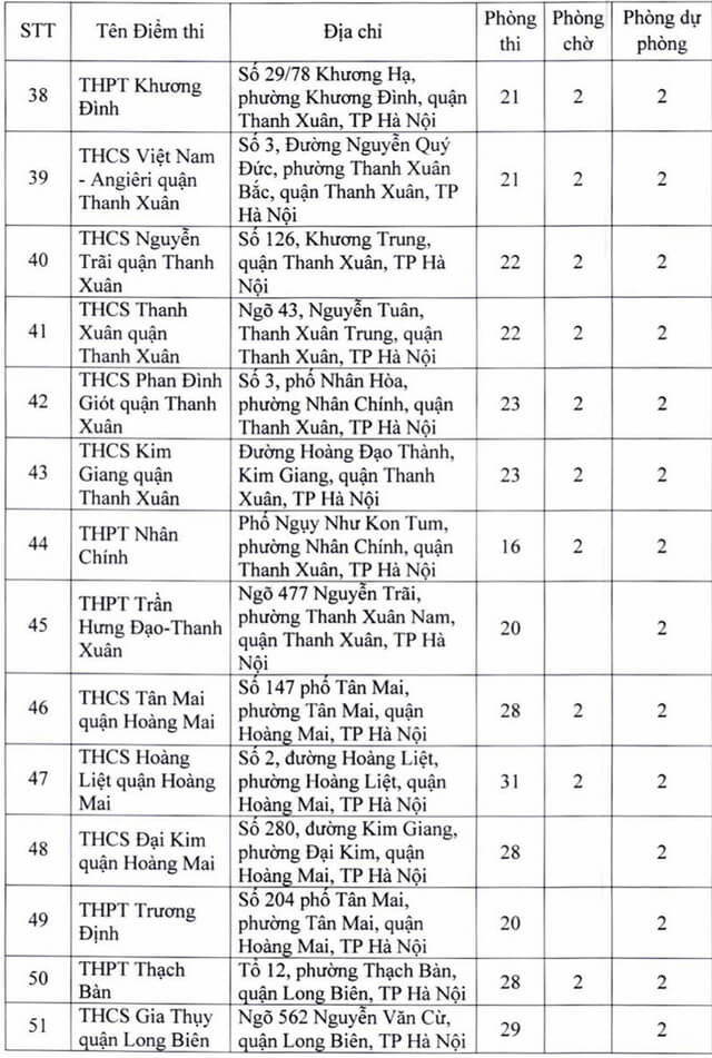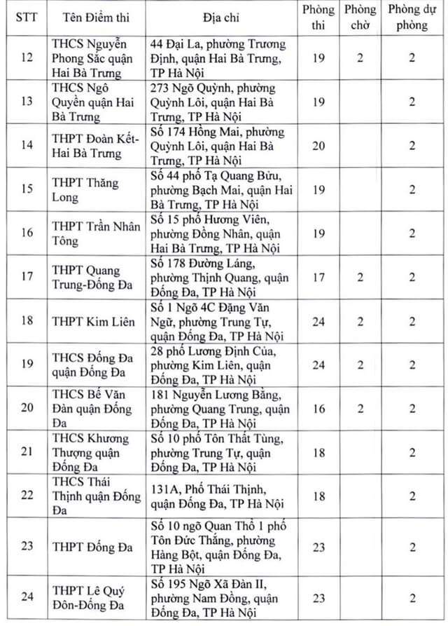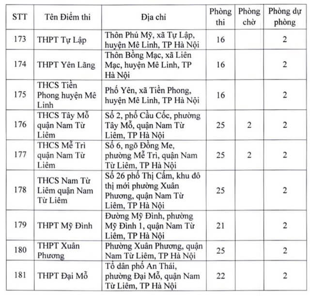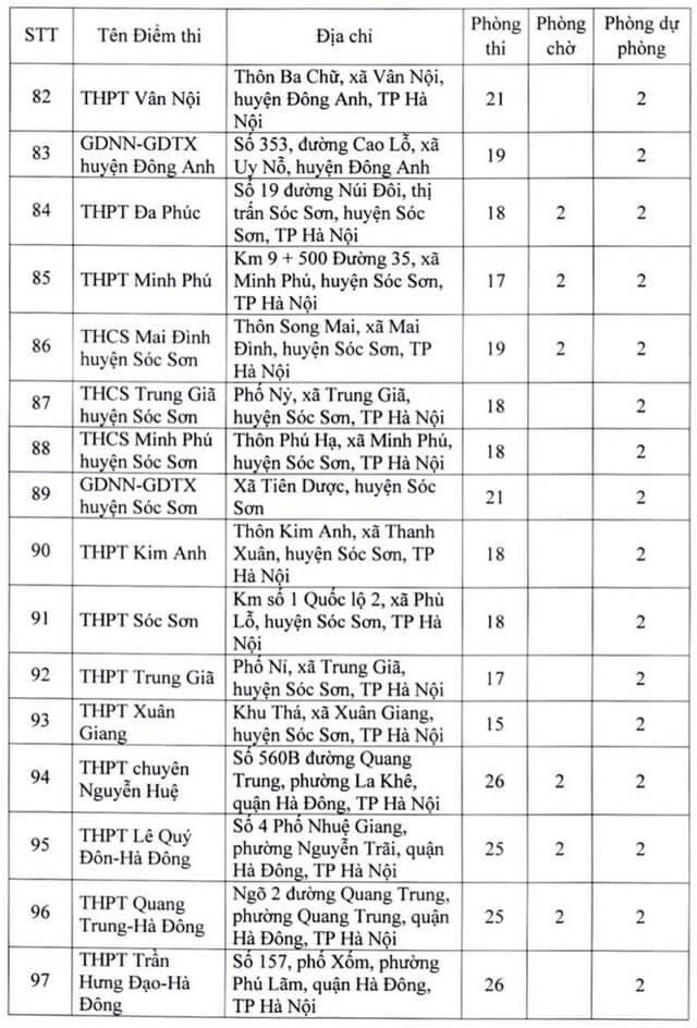 Theo đó, thành phố Hà Nội thành lập 181 điểm thi đặt tại các quận, huyện, thị xã. Ngoài số điểm thi chính thức, thành phố Hà Nội còn chuẩn bị các điểm thi dự phòng để chủ động ứng phó với dịch COVID-19 và các tình huống phát sinh. Năm 2022 Hà Nội là địa phương có số lượng thí sinh đăng ký dự thi chiếm gần 1/10 của cả nước, tương đương với gần 98.000 thí sinh. Vậy dưới đây là Danh sách 181 điểm thi tốt nghiệp THPT 2022 tại Hà Nội, mời các bạn cùng theo dõi tại đây.