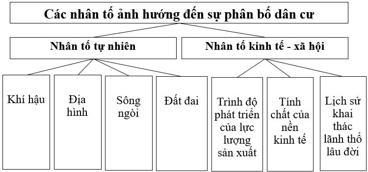 Hãy vẽ sơ đồ thể hiện các nhân tố tác động đến phân bố dân cư