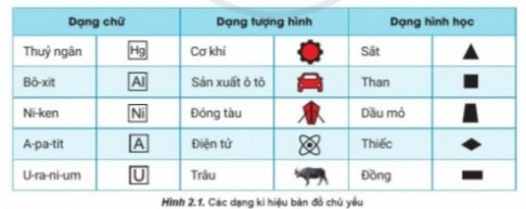 - Các dạng kí hiệu bản đồ chủ yếu: Dạng chữ, Dạng tượng hình, Dạng hình học