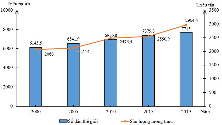 BIỂU ĐỒ THỂ HIỆN SỐ DÂN VÀ SẢN LƯỢNG LƯƠNG THỰC CỦA THẾ GIỚI GIAI ĐOẠN 2000 - 2019