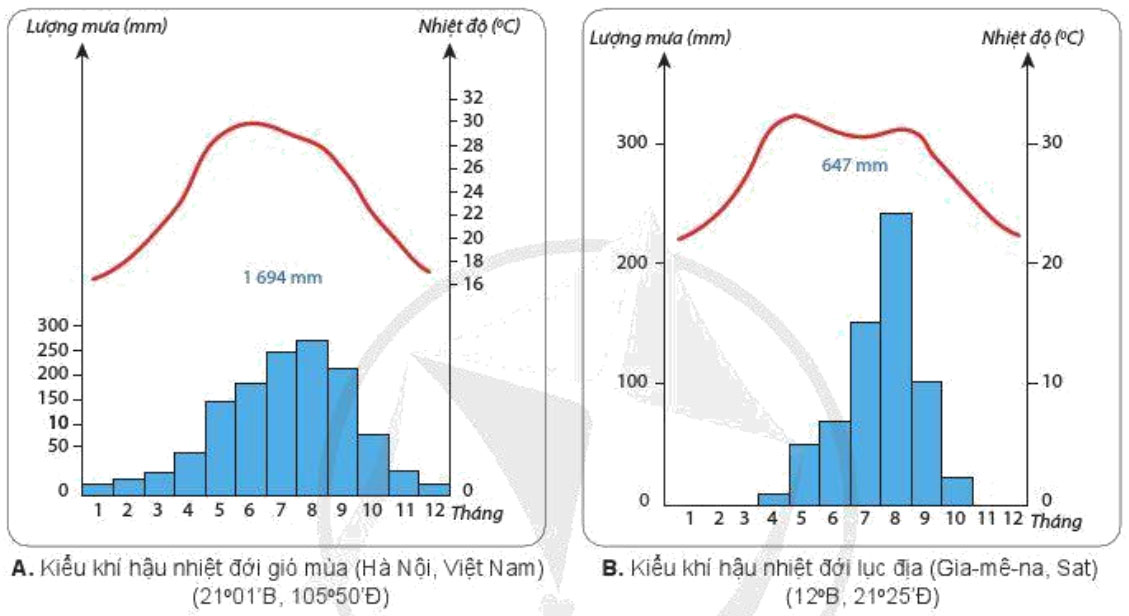 - Khí hậu nhiệt đới gió mùa với khí hậu nhiệt đới lục địa