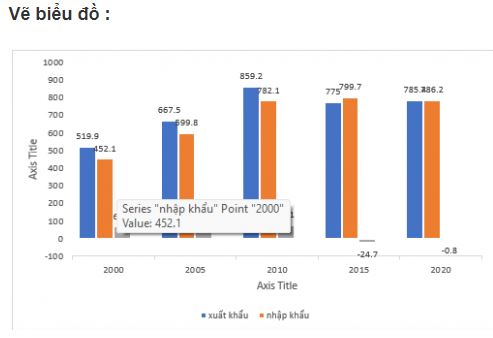 - Nhập khẩu: Tăng vào 2000- 2015 và có xu hướng giảm vào 2020.