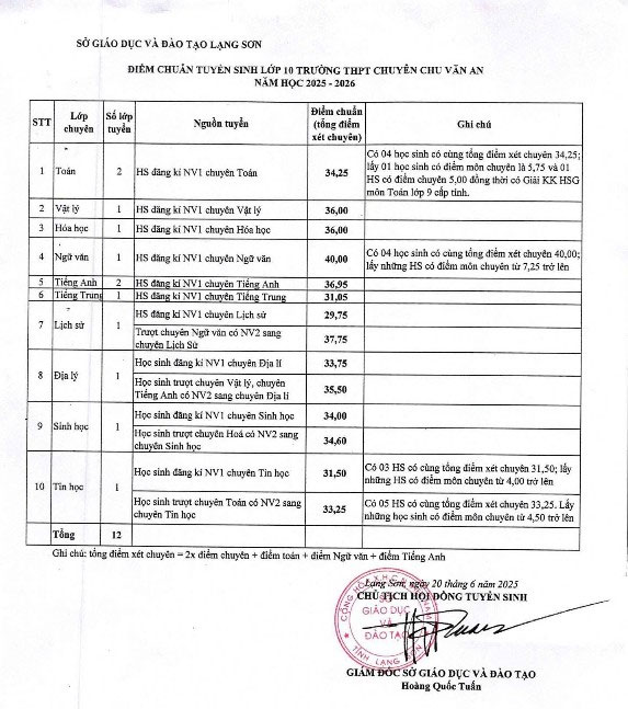 Điểm chuẩn vào 10 Lạng Sơn 2025