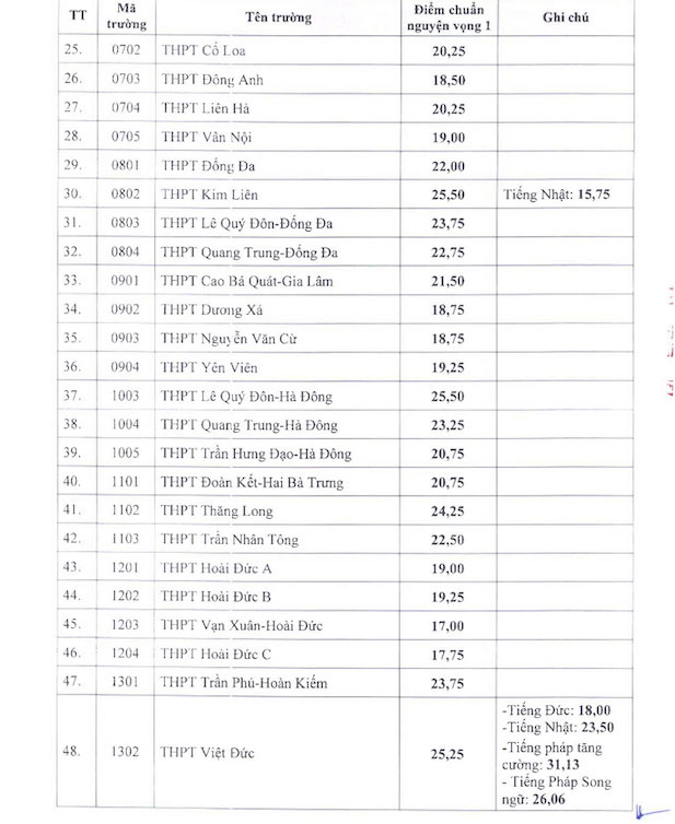 | 44 | THPT Đông Anh | 34 | 6,8 | -0,25 |