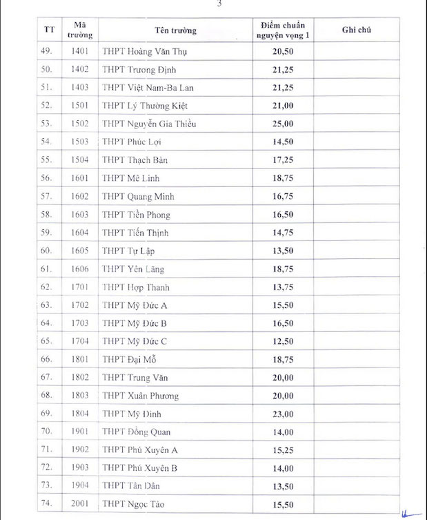 | 30 | THPT Thạch Bàn | 36,5 | 7,3 | 0 |