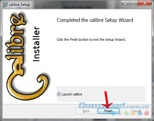 Bước 3: Tick tiếp vào Launch calibre để chạy phần mềm ngay khi hoàn thành cài đặt.