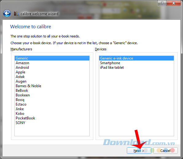 Bước 4: Để thiết lập cho Calibre trong quá trình sử dụng. Các bạn có thể tùy chọn ngôn ngữ trong mục Choose your language, Calibre có hỗ trợ cả tiếng Việt.