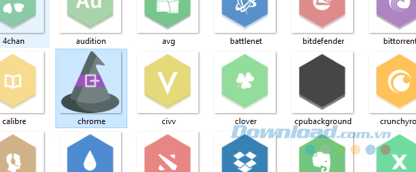 Đi tới phần Images trong thư mục Skin Honeycomb của bạn (C: \Users\[User Name]\Documents\Rainmeter\Skins\Honeycomb\@Resources\Images) và thay thế một biểu tượng. Bạn có thể thực hiện điều này bằng cách di chuyển tệp biểu tượng PNG vào thư mục này, xóa biểu tượng mặc định và thay đổi tên tệp biểu tượng mới của bạn thành một tệp bạn đã xóa. Bài viết sẽ thay đổi biểu tượng Chrome từ hình ảnh Honeycomb mặc định của nó sang một icon trong một bộ biểu tượng Halloween.
