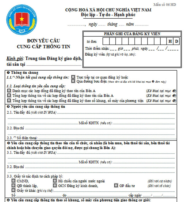 - Nếu đơn yêu cầu cung cấp thông tin được gửi qua fax mà người yêu cầu cung cấp thông tin không phải là khách hàng thường xuyên thì Trung tâm Đăng ký từ chối việc việc cung cấp thông tin.