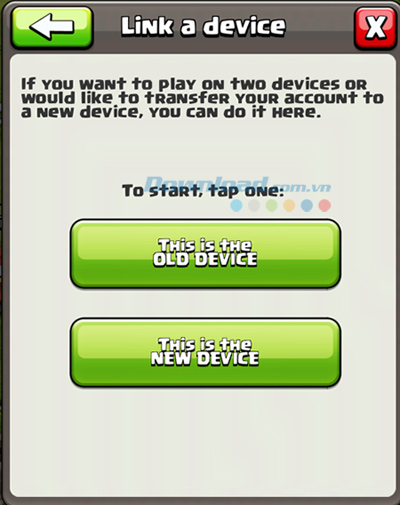 Bước 2: Cửa sổ Link a device xuất hiện. Trên thiết bị đang chơi nhấn chọn nút This is the OLD DEVICE, còn trên thiết bị mới muốn đồng bộ sang chọn This is the NEW DEVICE.