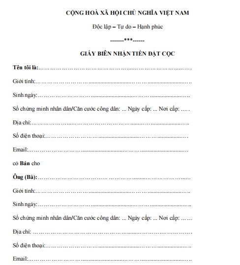GIẤY BIÊN NHẬN TIỀN ĐẶT CỌC