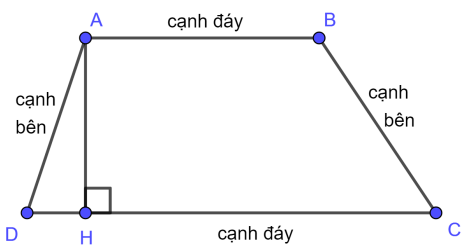 AB và CD gọi là các cạnh đáy ( hoặc đáy). AB là đáy nhỏ, CD là đáy lớn.
