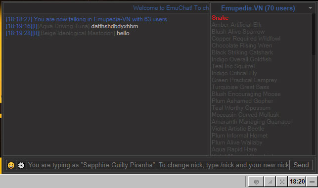 Cửa sổ chat sẽ hiện ra, giúp các bạn thoải mái trao đổi và giao tiếp với những người dùng khác. Nếu muốn đổi nickname, hãy gõ cú pháp: /nick "tên muốn đặt" sau đó Enter.
