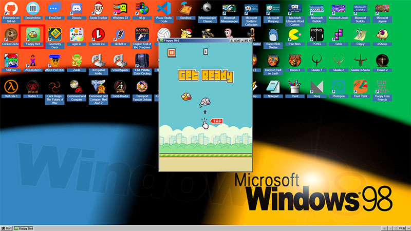 Tựa game huyền thoại made in Việt Nam - Flappy Bird cũng hiện diện trong EmuOS. Các bạn chỉ cần nhấn đúp vào biểu tượng để vào game, sau đó click chuột để thực hiện thao tác nhảy.