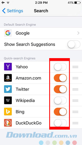 Một điểm cải tiến mới rất hay ở Firefox cho iOS mà các ứng dụng khác không có, đó là khả năng thay đổi công cụ tìm kiếm giống như trên máy tính.