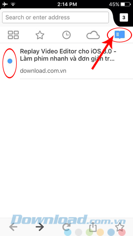 Các bạn truy cập vào một địa chỉ trang bất kỳ bằng Firefox cho iOS, sau đó nhấp vào biểu tượng ngôi sao bên dưới cùng, lúc này sẽ xuất hiện một biểu tượng hình quyển sách - Reading List ở bên trên thanh địa chỉ.