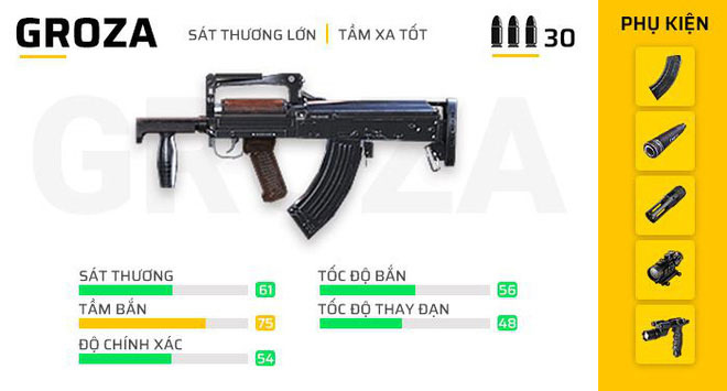 Cặp đôi súng thứ 2 mà người chơi nên sử dụng đó là Groza và M79. Với sức mạnh, độ chính xác và tốc độ của khẩu súng được coi là tốt nhất - Groza, game thủ sẽ dễ dàng hạ gục được những mục tiêu ở gần hay xa. Bổ sung thêm sức mạnh công phá diện rộng tuyệt vời của khẩu súng phóng lựu M79, game thủ sẽ không còn e ngại những mục tiêu trốn trong nhà hay địa hình hẹp nữa.
