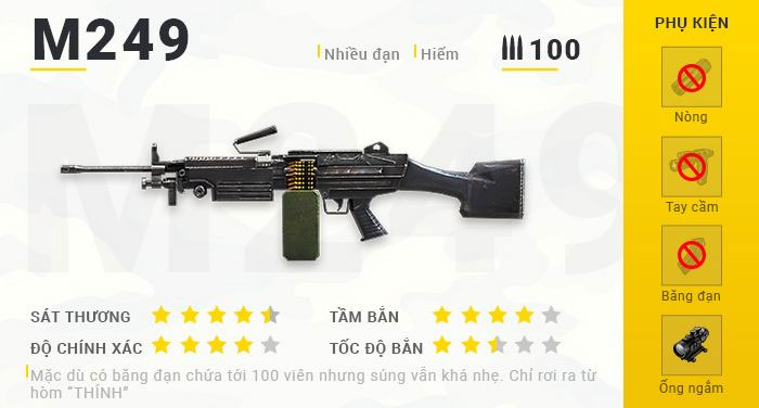 Cặp đôi súng cuối cùng là sự kết hợp giữa một khẩu súng có lượng đạn nhiều nhất trong Free Fire - M249 và một khẩu súng ngắn có sát thương cực lớn - M1873