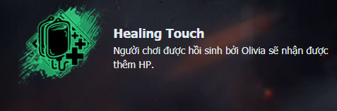 Với việc kỹ năng này chỉ có thể sử dụng cho đồng đội thì ở những trận đấu Solo Squad, Olivia sẽ không thể hiện được sức mạnh của mình. Tuy nhiên, ở những game đấu đôi hay đấu đội thì cô nàng lại tỏ ra đặc biệt hữu dụng với khả năng hồi máu của mình, giúp đồng đội có thể chiến đấu nhanh hơn sau khi hồi sinh.