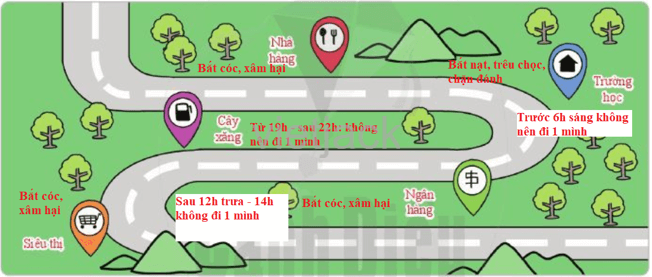 Vẽ bản đồ cảnh báo nguy hiểm trên đường từ nhà em đến trường học bằng cách: