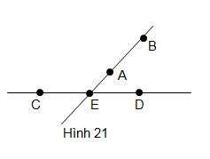 Quan sát Hình 21, chỉ ra các trường hợp ba điểm thẳng hàng. Trong mỗi trường hợp đó, chỉ ra các điểm nằm giữa hai điểm còn lại