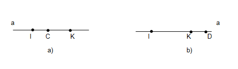 a) Chỉ ra một điểm D nằm trên đường thẳng a sao cho C nằm giữa I và K.