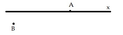 + Điểm B không thuộc đường thẳng x và kí hiệu là B ∉ x. Ta còn nói: Điểm nằm ngoài đường thẳng x, hoặc đường thẳng x không đi qua điểm B, hoặc đường thẳng x không chứa điểm B.