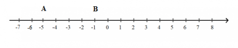 + Điểm 5 (biểu diễn số nguyên 5) nằm bên phải điểm gốc 0, cách điểm gốc 5 khoảng.