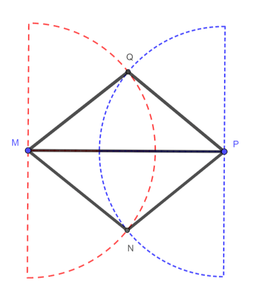 Vẽ bằng thước và compa hình thoi MNPQ, biết MN = 6 cm và MP = 10 cm.