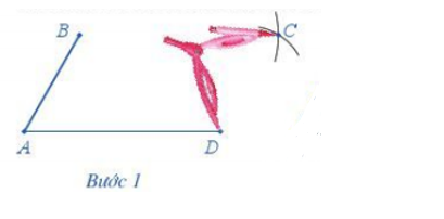 Bước 1. Lấy B làm tâm, dùng compa vẽ một phần đường tròn có bán kính AD. Lấy D làm tâm, dùng compa vẽ một phần đường tròn có bán kính AB. Gọi C là giao điểm của hai phần đường tròn này.