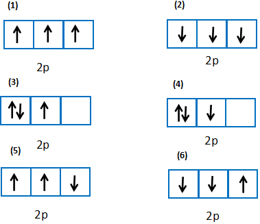 Trong các cách biểu diễn electron và các orbital của phân lớp 2p ở trạng thái cơ bản, hãy chọn cách phân bố đúng: