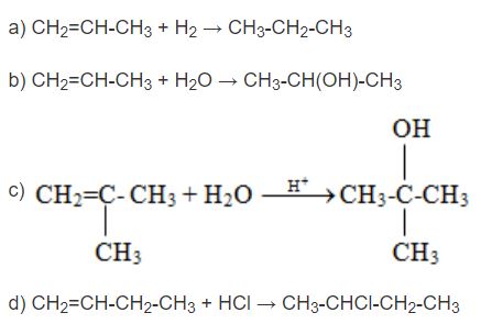 a) Propene tác dụng với hydrogen, xúc tác nickel.