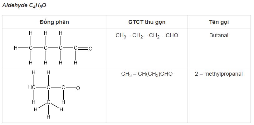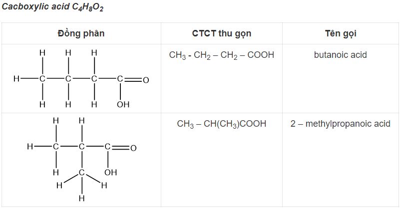 Viết công thức cấu tạo và gọi tên theo danh pháp thay thế của các aldehyde, ketone có công thức phân tử C4H8O và carboxylic acid có công thức phân tử C4H8O2.
