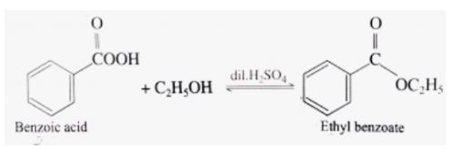 Ethyl benzoate là hợp chất chính tạo mùi thơm của quả anh đào (cherry). Hãy viết phương trình hoá học của phản ứng tổng hợp ethyl benzoate từ carboxylic acid và alcohol tương ứng.