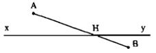 Ví dụ: Đoạn thẳng AB và đường thẳng xy cắt nhau, giao điểm là điểm H.