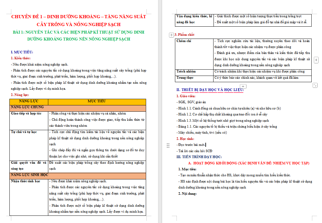 Kế hoạch bài dạy chuyên đề Sinh học 11 Kết nối tri thức được biên soạn kỹ lưỡng, giúp giáo viên xác định mục tiêu, nội dung, phương pháp và hình thức tổ chức dạy học phù hợp với từng bài. Đồng thời giúp đảm bảo hoạt động dạy học đi đúng trọng tâm, khoa học và logic. Giáo án chuyên đề Sinh học 11 Kết nối tri thức trình bày dưới dạng File Word rất đẹp rất dễ dàng điều chỉnh, bổ sung, giúp giáo viên soạn bài khoa học, tiết kiệm thời gian và nâng cao chất lượng dạy học. Bên cạnh đó, thầy cô có thể tham khảo thêm giáo án Ngữ văn 11 Kết nối tri thức, giáo án Toán 11 Kết nối tri thức, giáo án môn Địa lí11 Kết nối tri thức với cuộc sống.