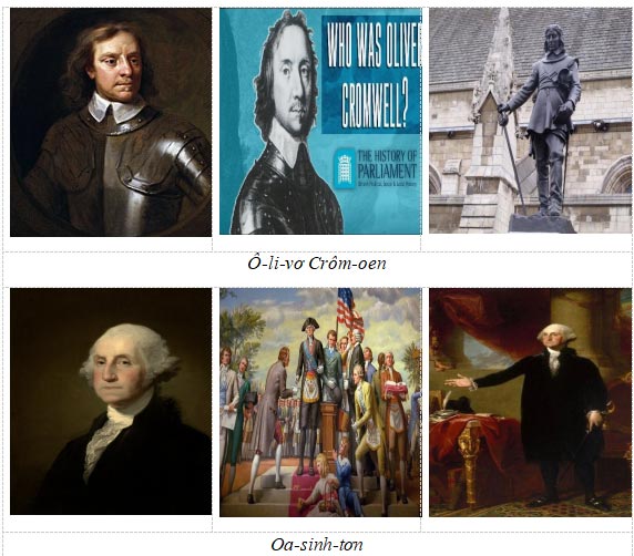 - GV trình chiếu cho HS quan sát một số hình ảnh về ba nhân vật lịch sử Ô-li-vơ Crôm-oen, G.Oa-sinh-tơn, Rô-be-spie: